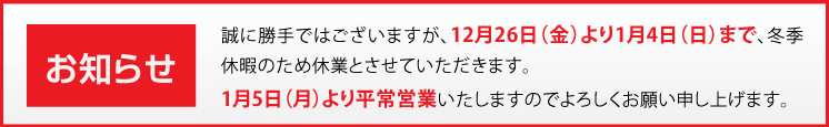 - 夏季休業日について☆8月11日(日)~8月15日(木)☆